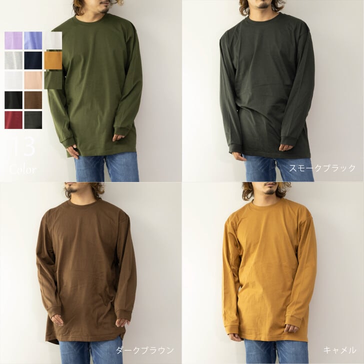 Tシャツ ユニセックス 長袖 ヘビーウェイト 無地 くすみカラー ロンT 大きいサイズ S M L XL 2XL 3XL