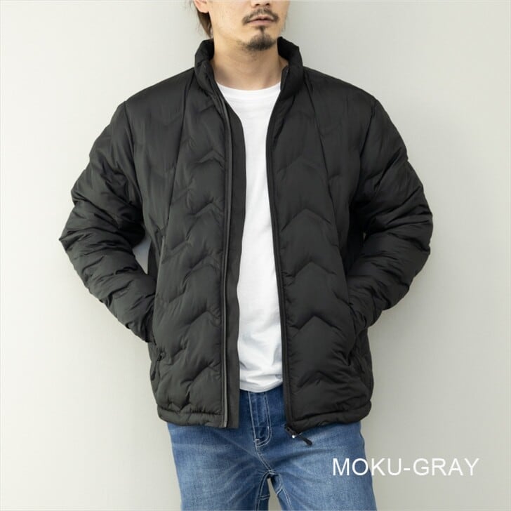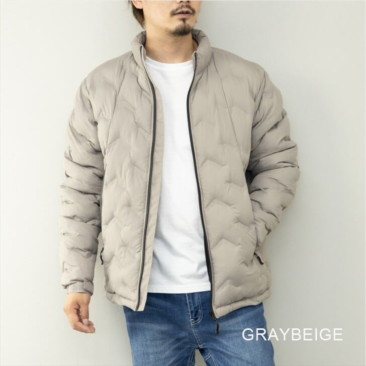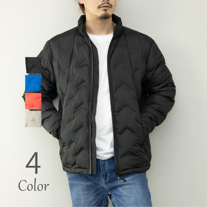 フェイクダウンジャケット メンズ パデット 中綿 デュスポ 型押し スタンドカラー パデットジャケット