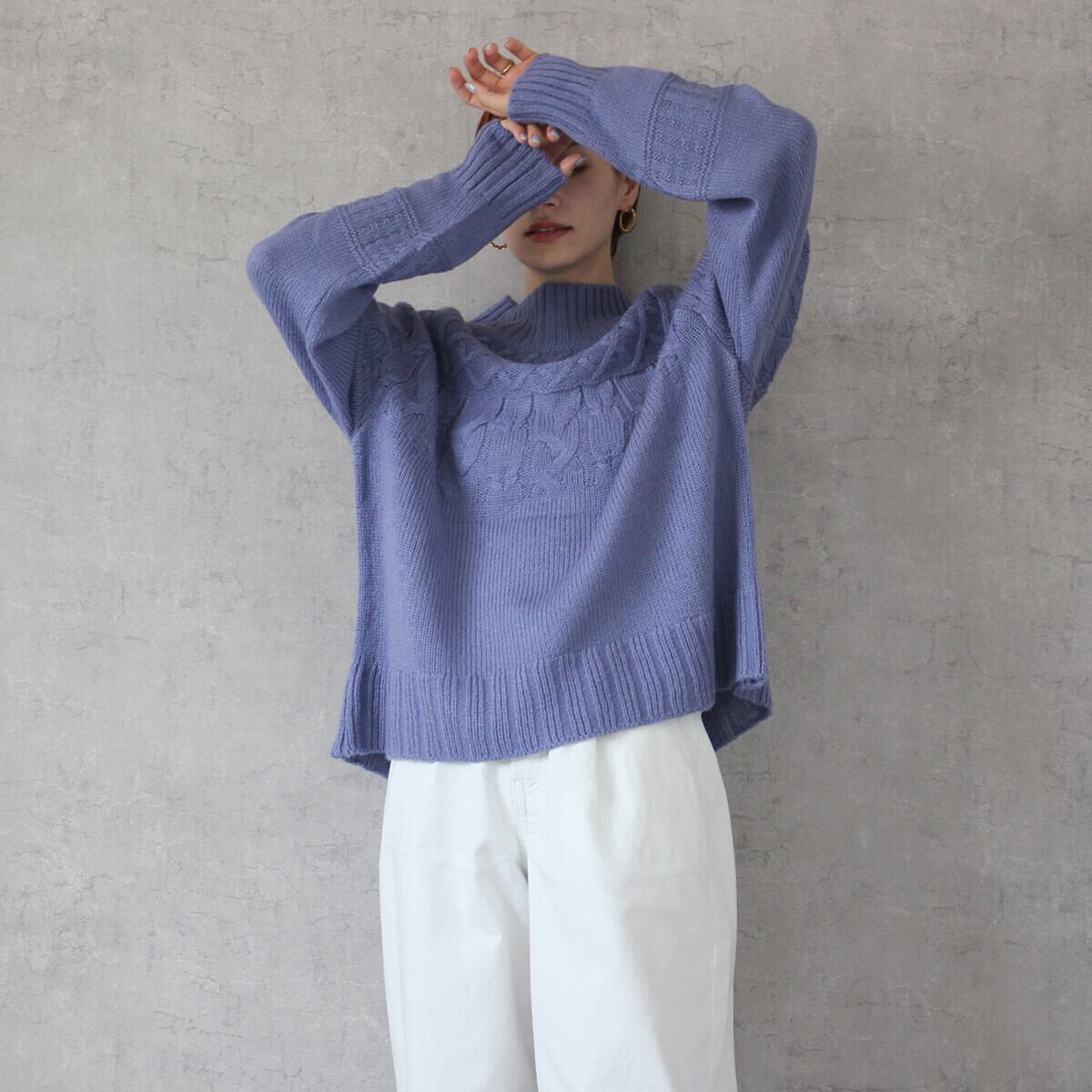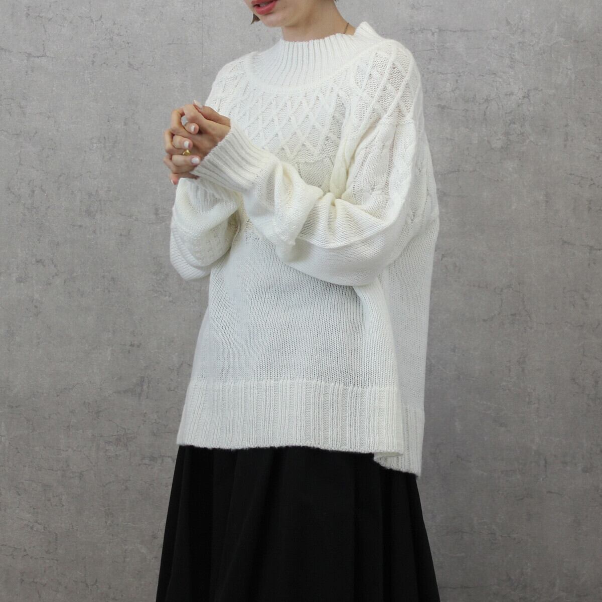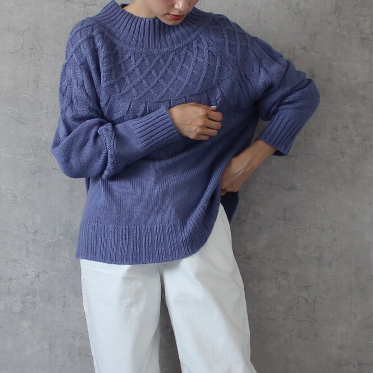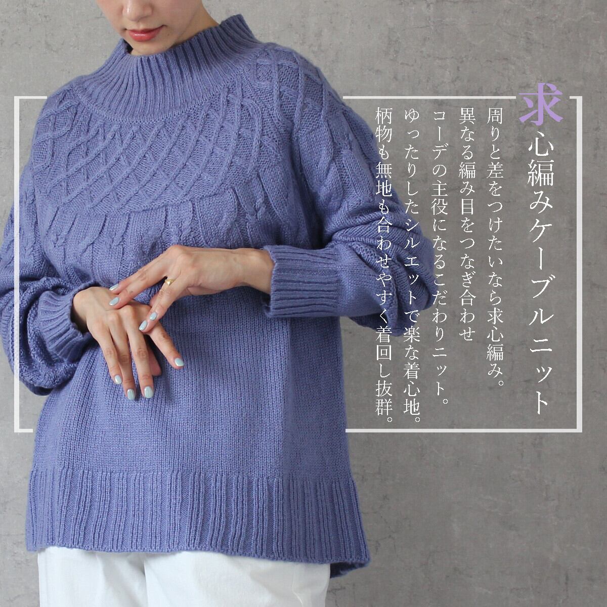 #求心編みハイネックケーブルニット #求心編み #ケーブル #ハイネック #ニット #トップス #ハイネックニット #セーター #長袖 #2023秋冬新作