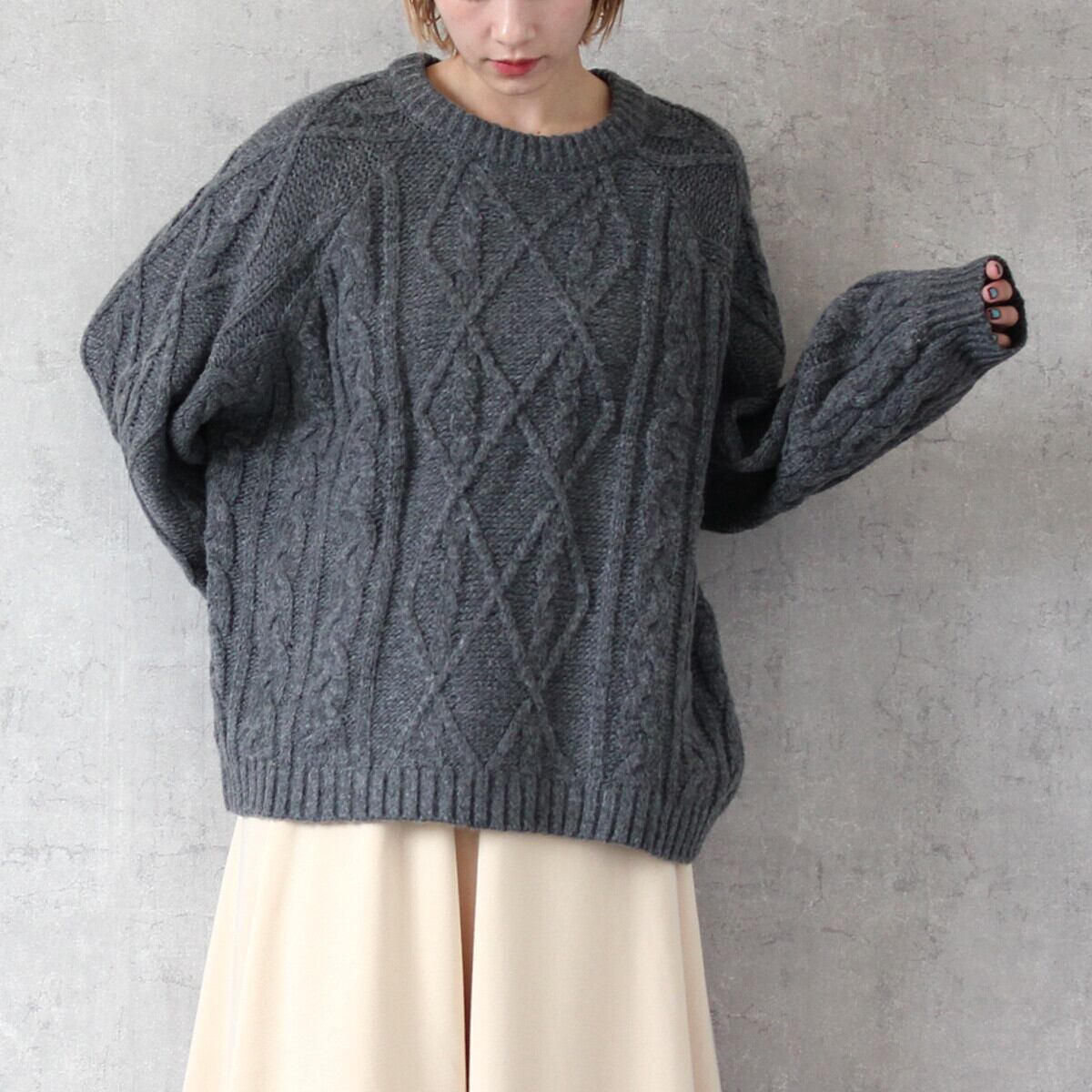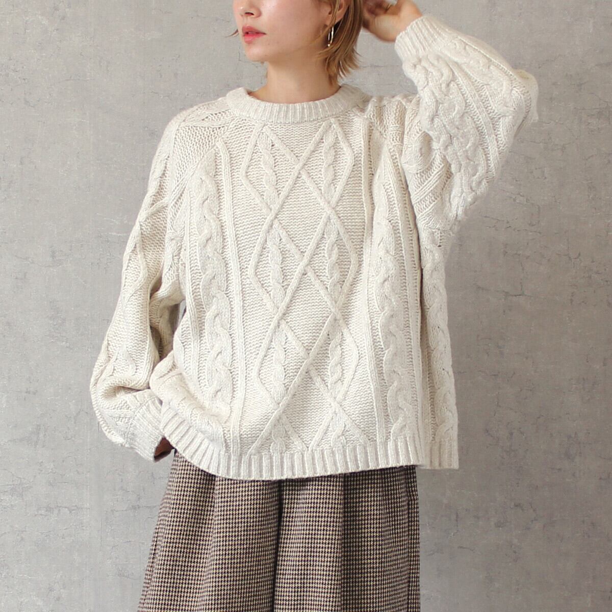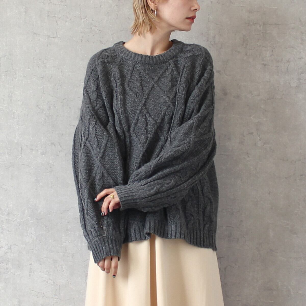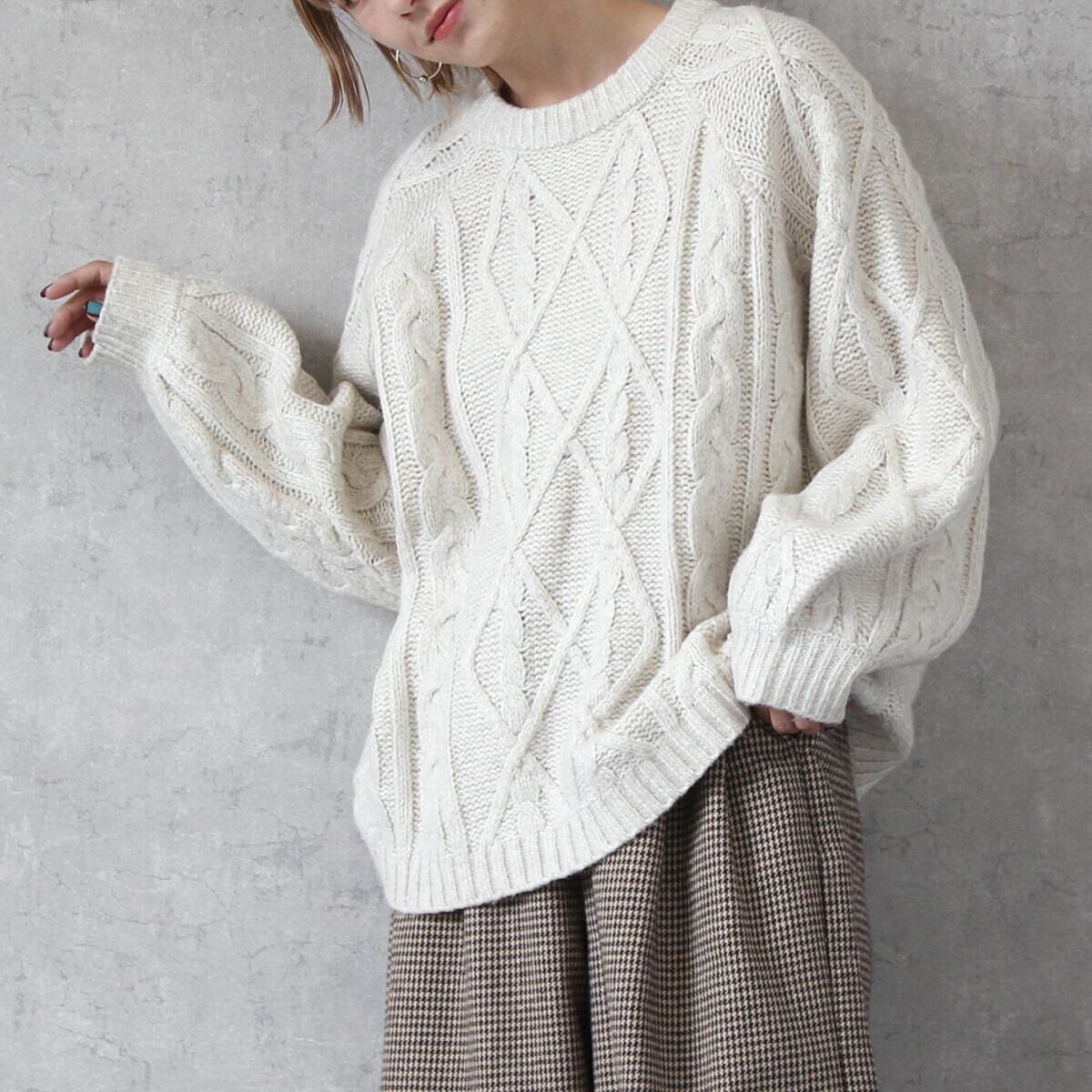 大きな柄編みが存在感抜群。手編み風ニットプルオーバーが登場!
