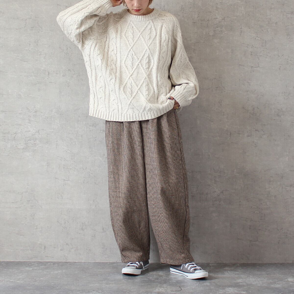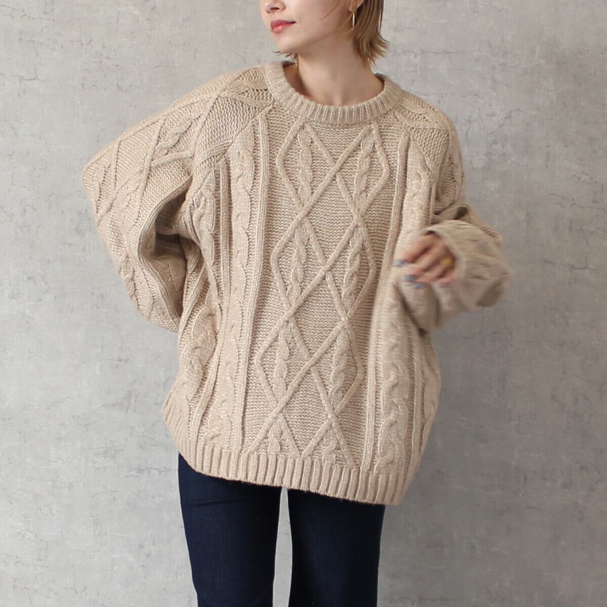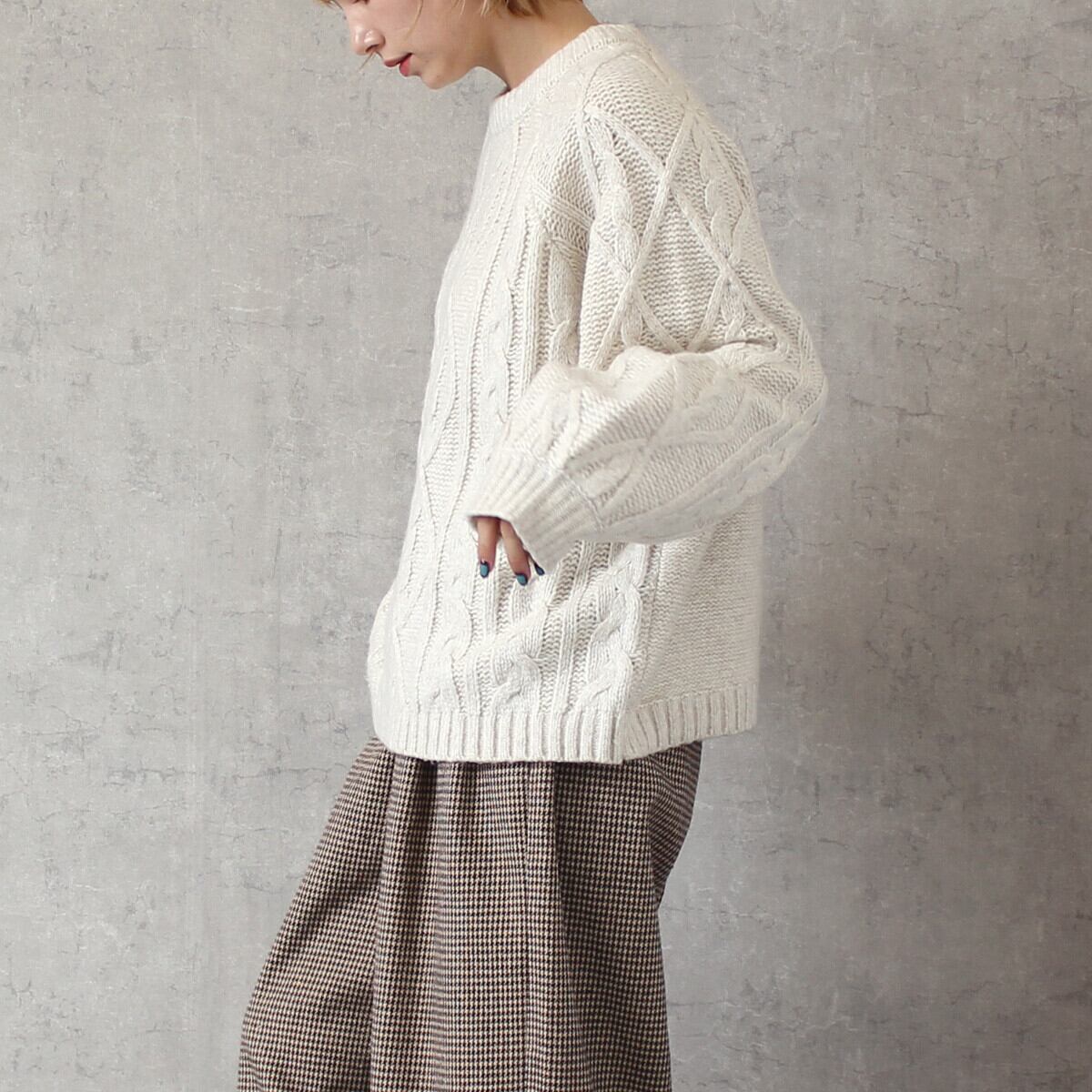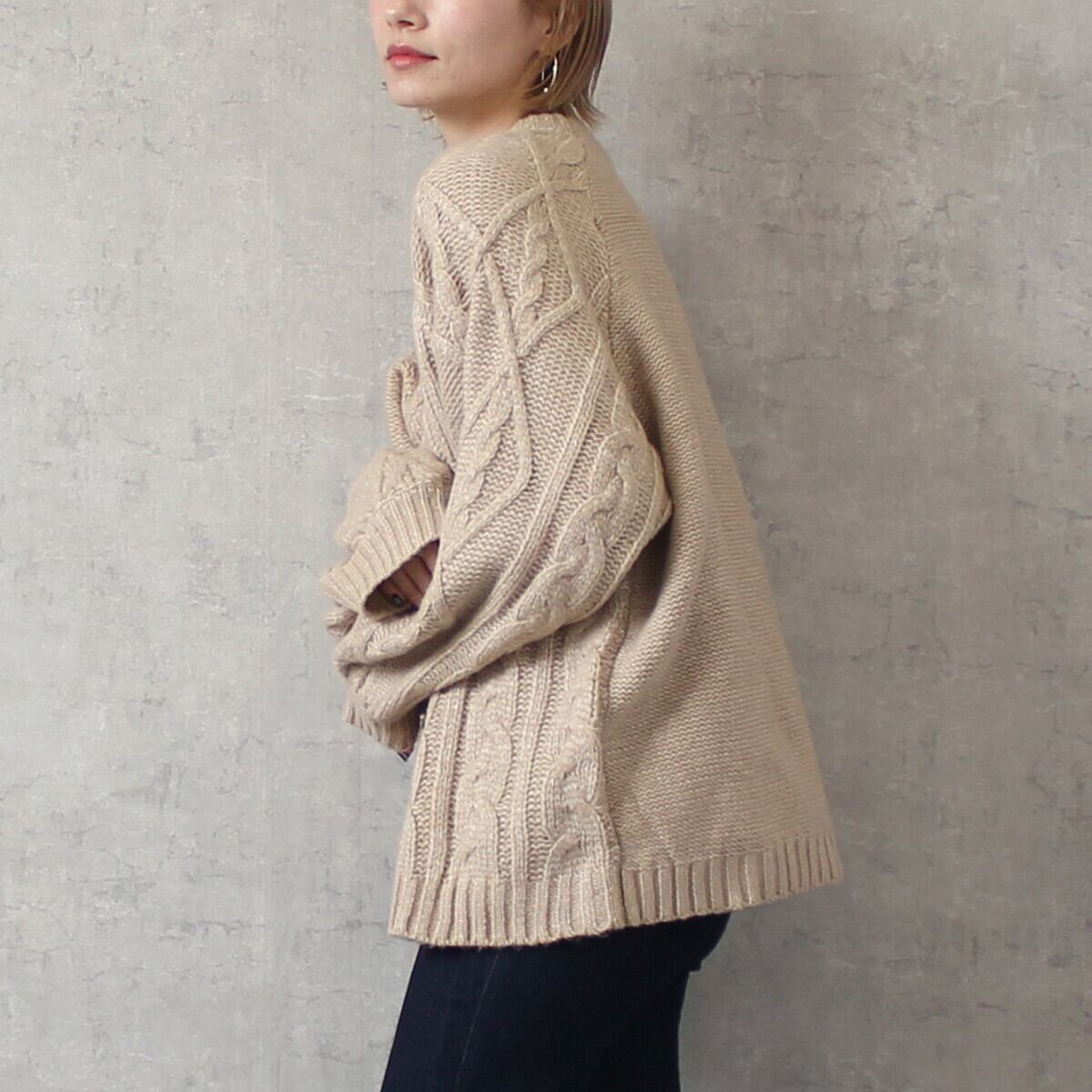 大きな柄編みが存在感抜群。手編み風ニットプルオーバーが登場!