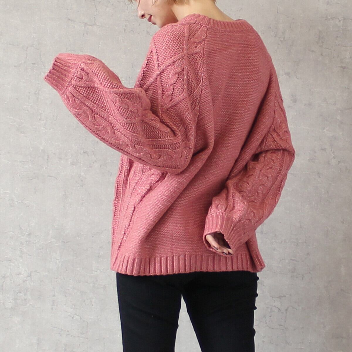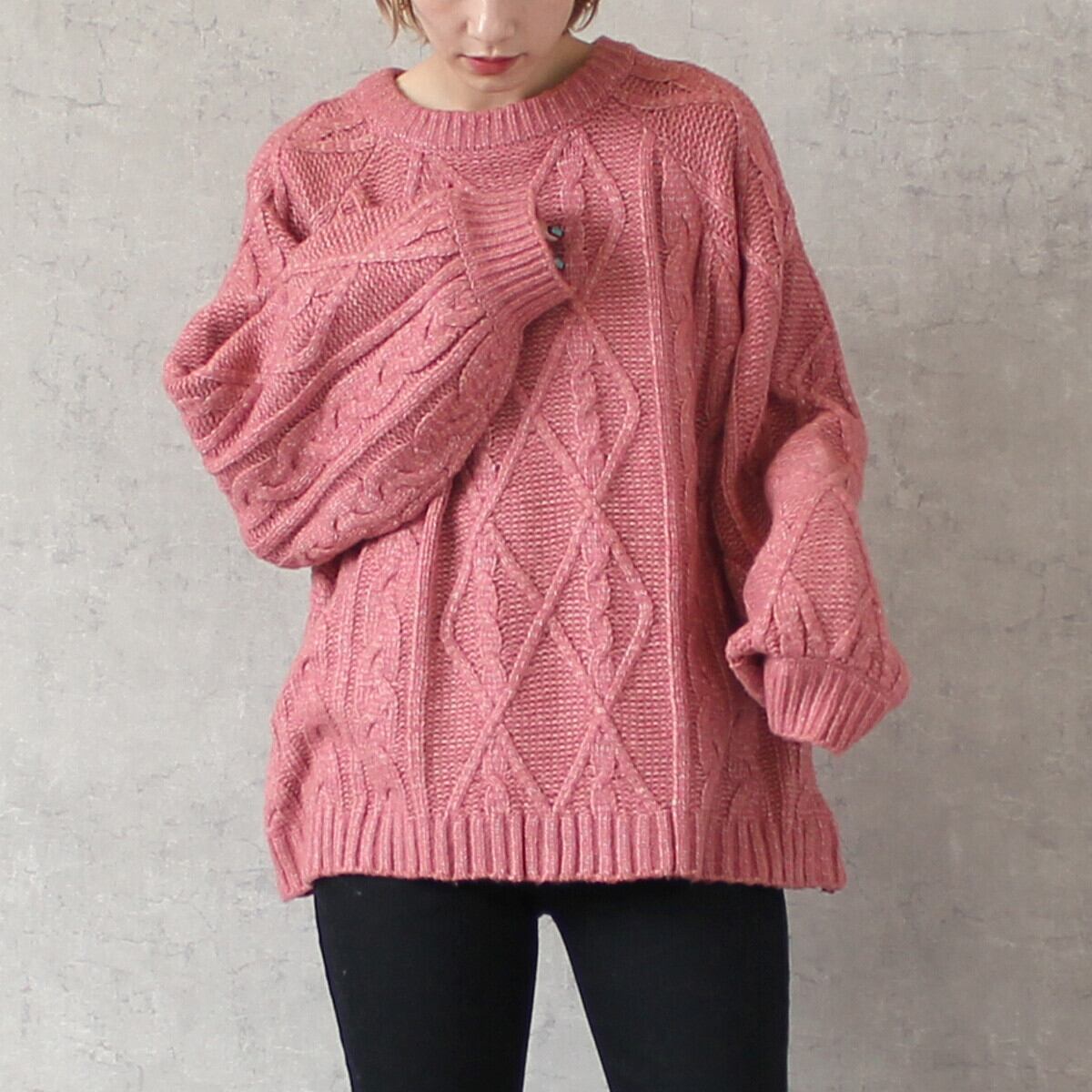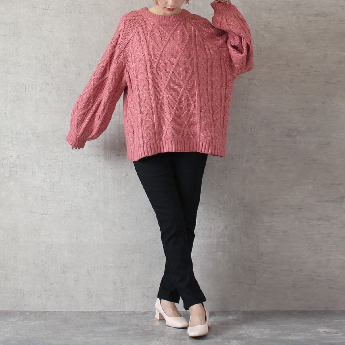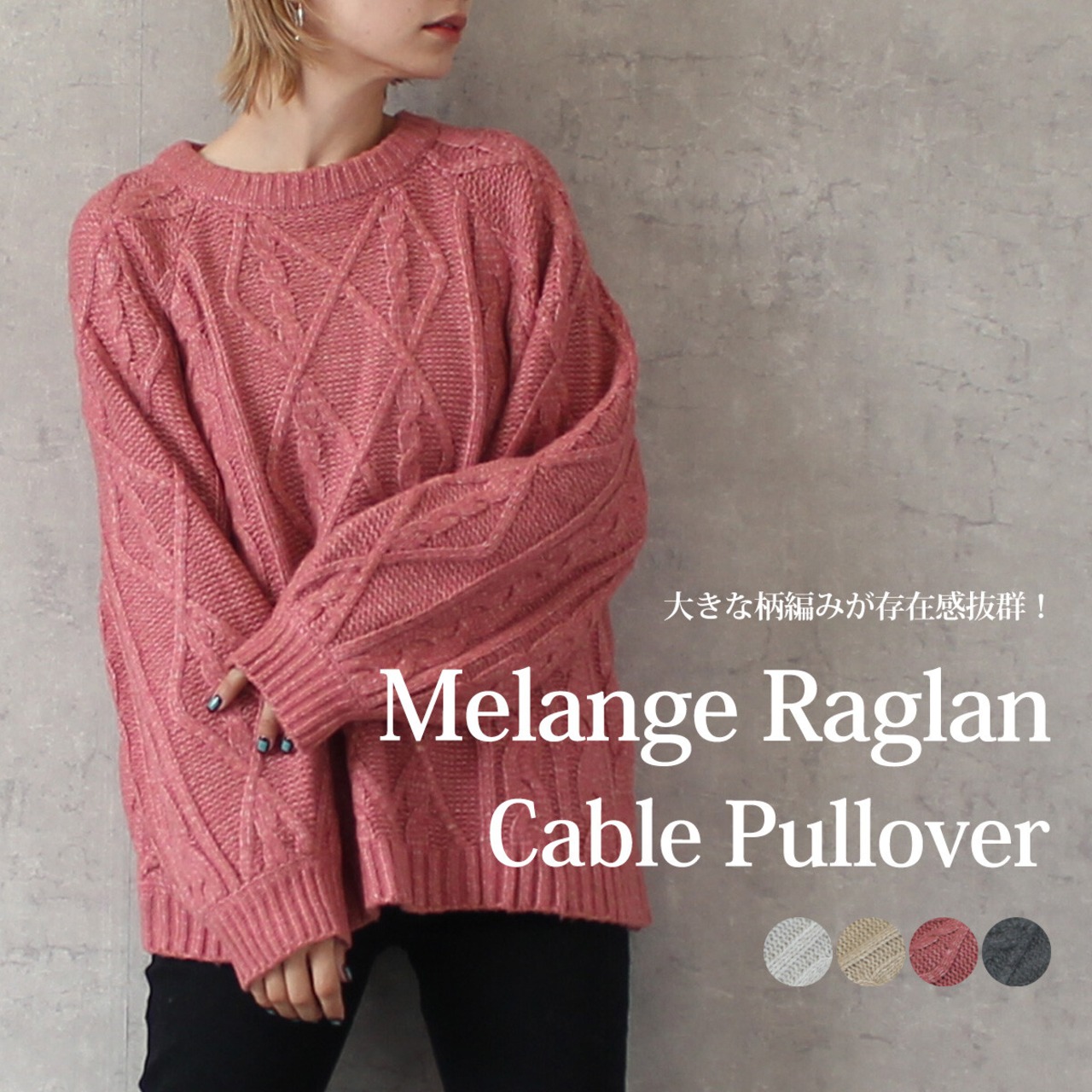 ケーブル ニット メランジ ラグラン ニット トップス セーター 長袖 秋冬 2023秋冬新作【即納】