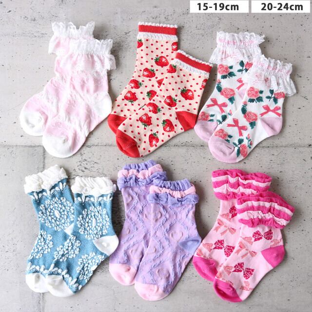 年間定番☆女児綿混クルー丈ソックスプリンセス柄新入荷です♪ 綿混素材となっており快適な履き心地となっており年間通してご着用いただけます☆ 履き口部分も、ふわふわ系・フリル系・ぽこぽこ系ととってもキュートなデザインとなっております♪ サイズは15-19・20-24cmのい2サイズ展開となります。