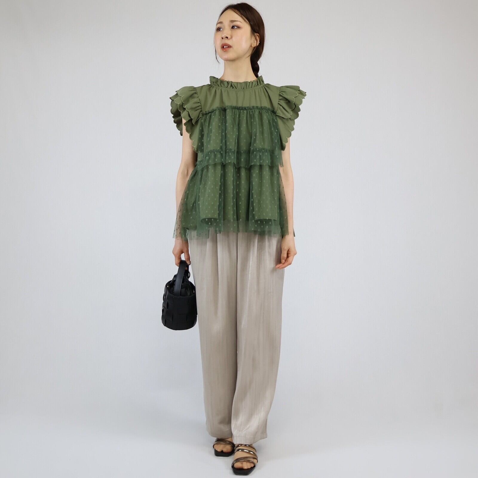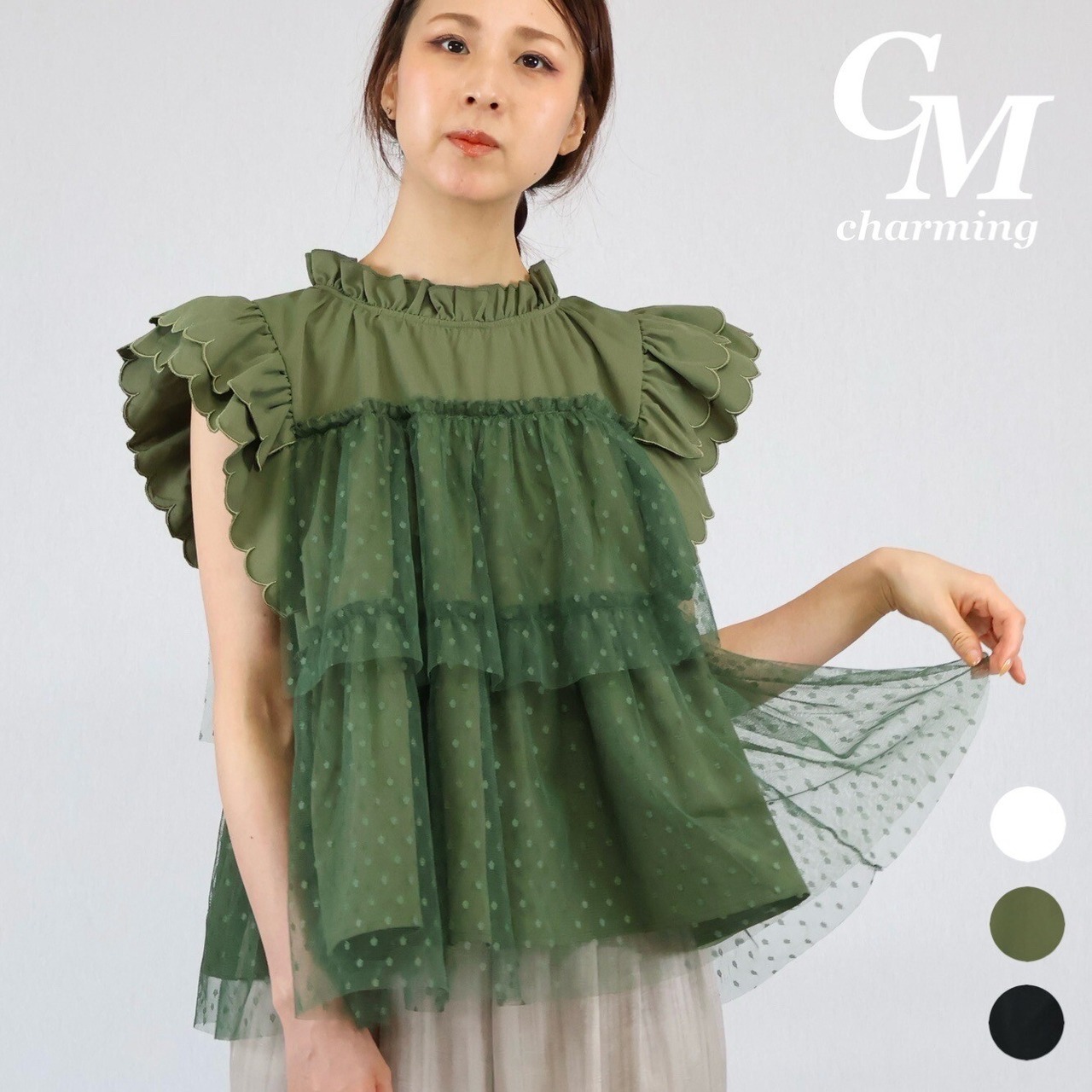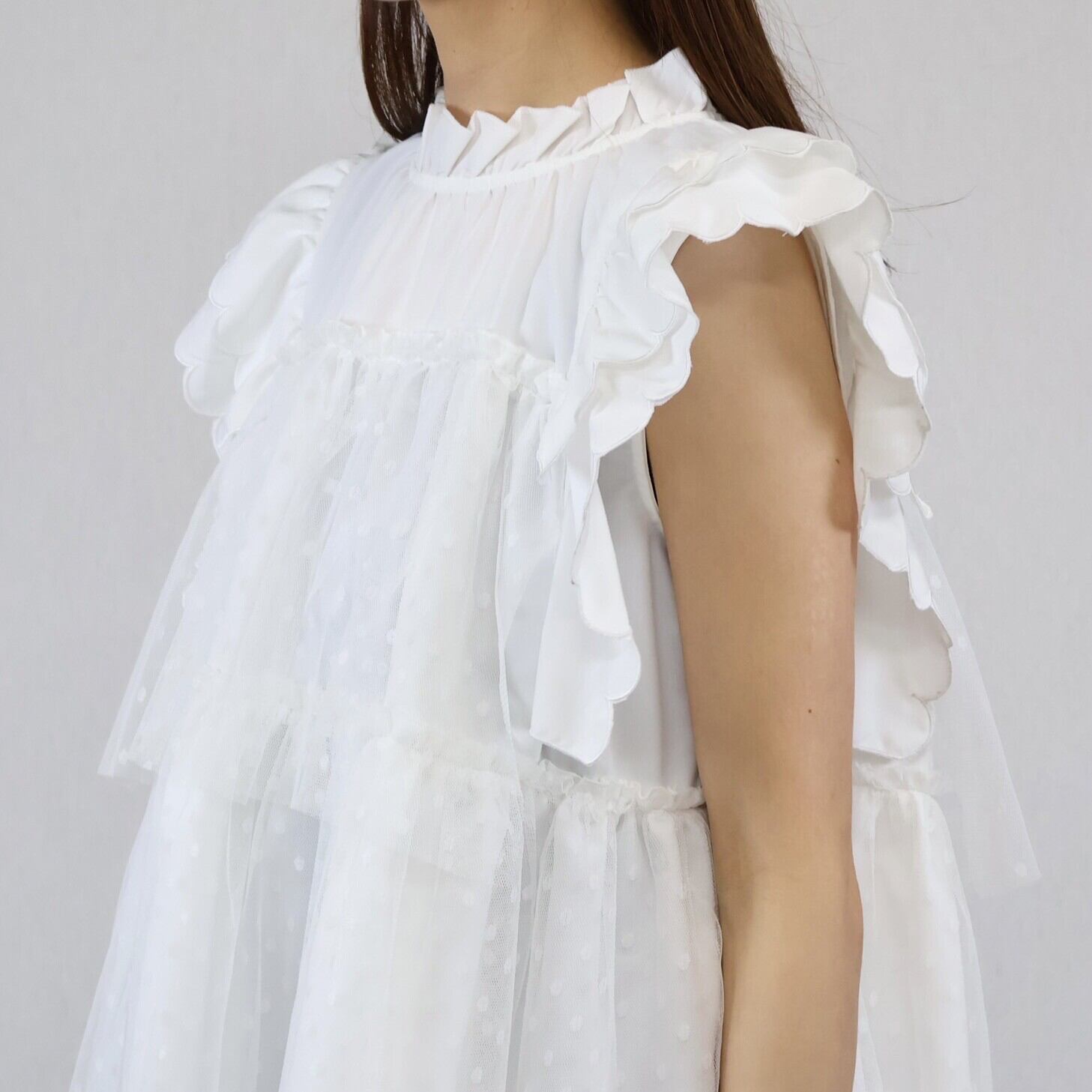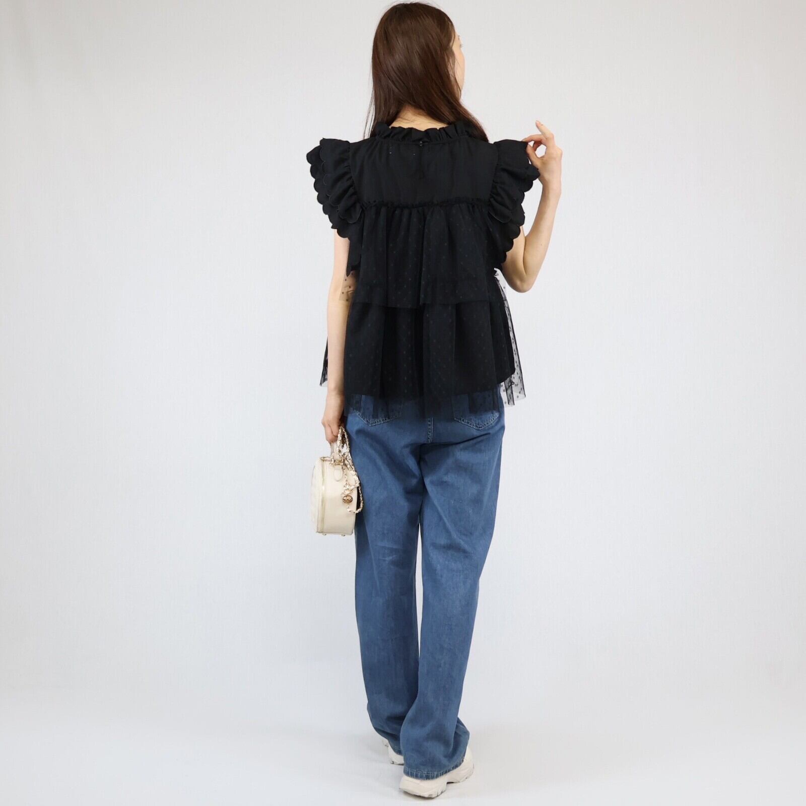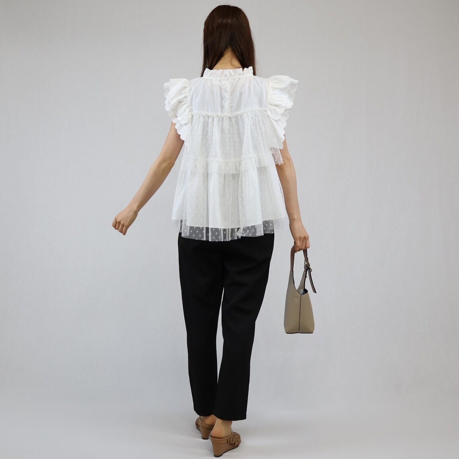 【2024年 新作】スカラップ ドット柄チュール かさねデザイン プルオーバー  ミセス 即納