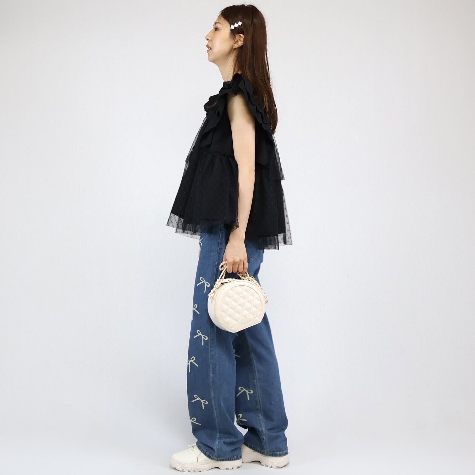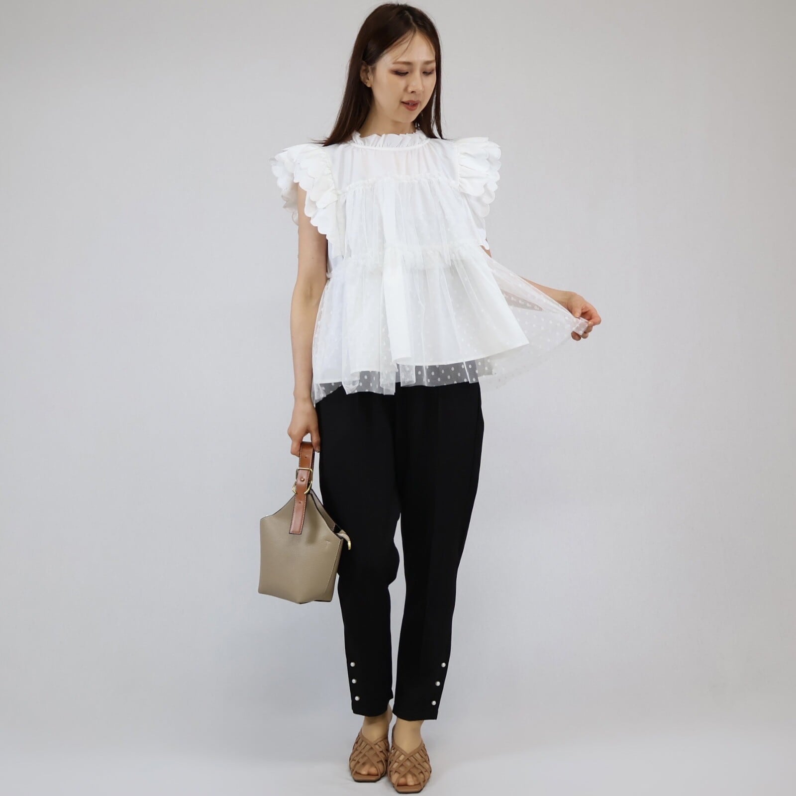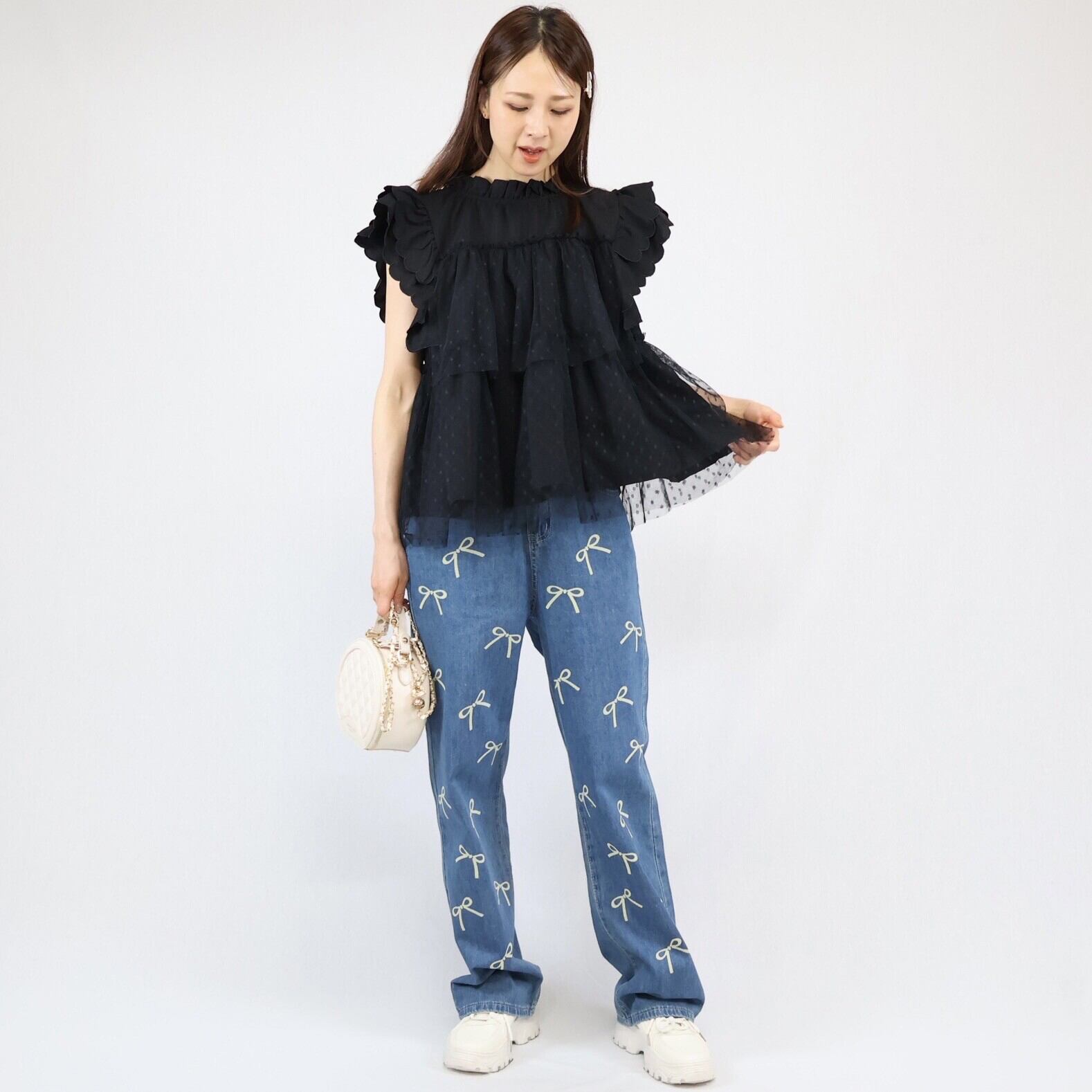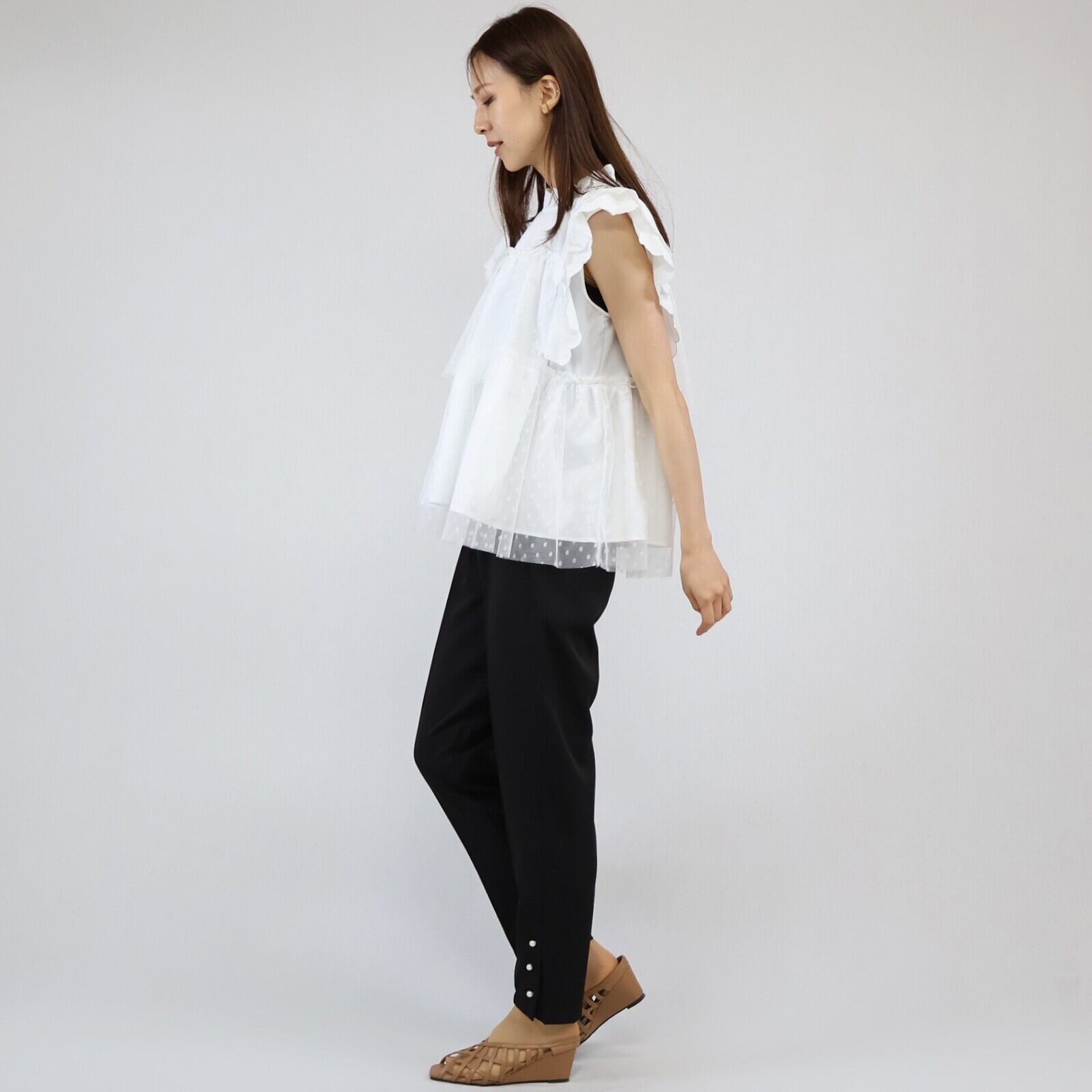 【2024年 新作】スカラップ ドット柄チュール かさねデザイン プルオーバー  ミセス 即納