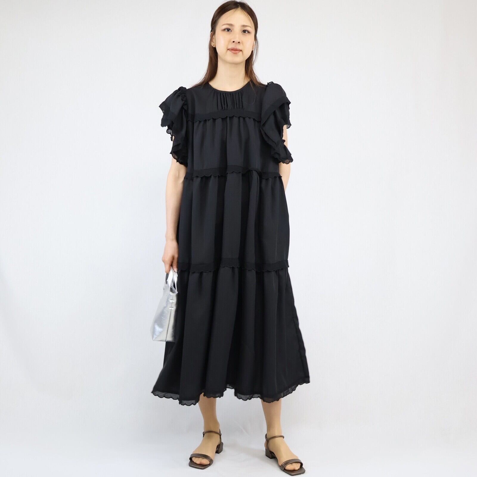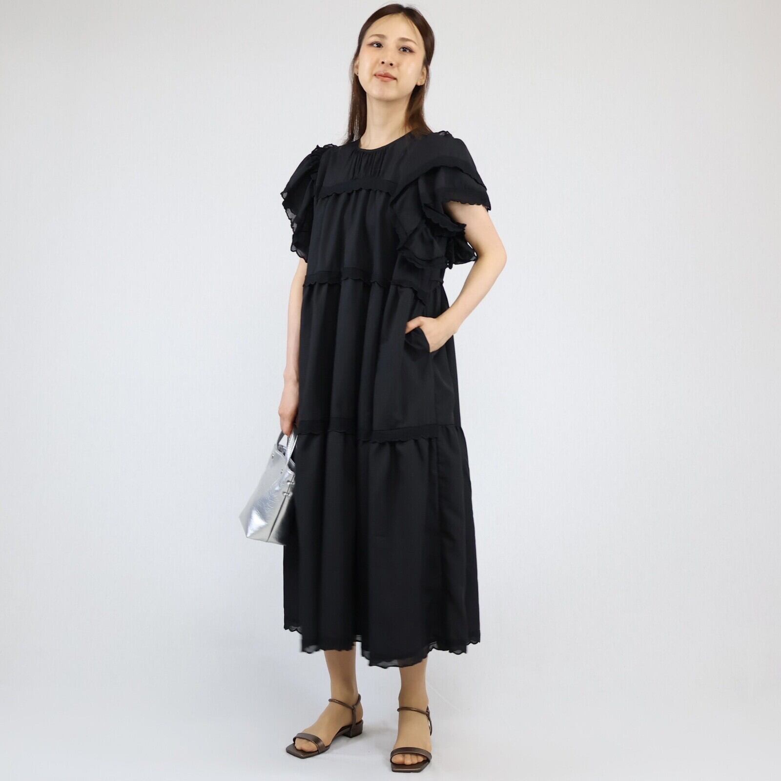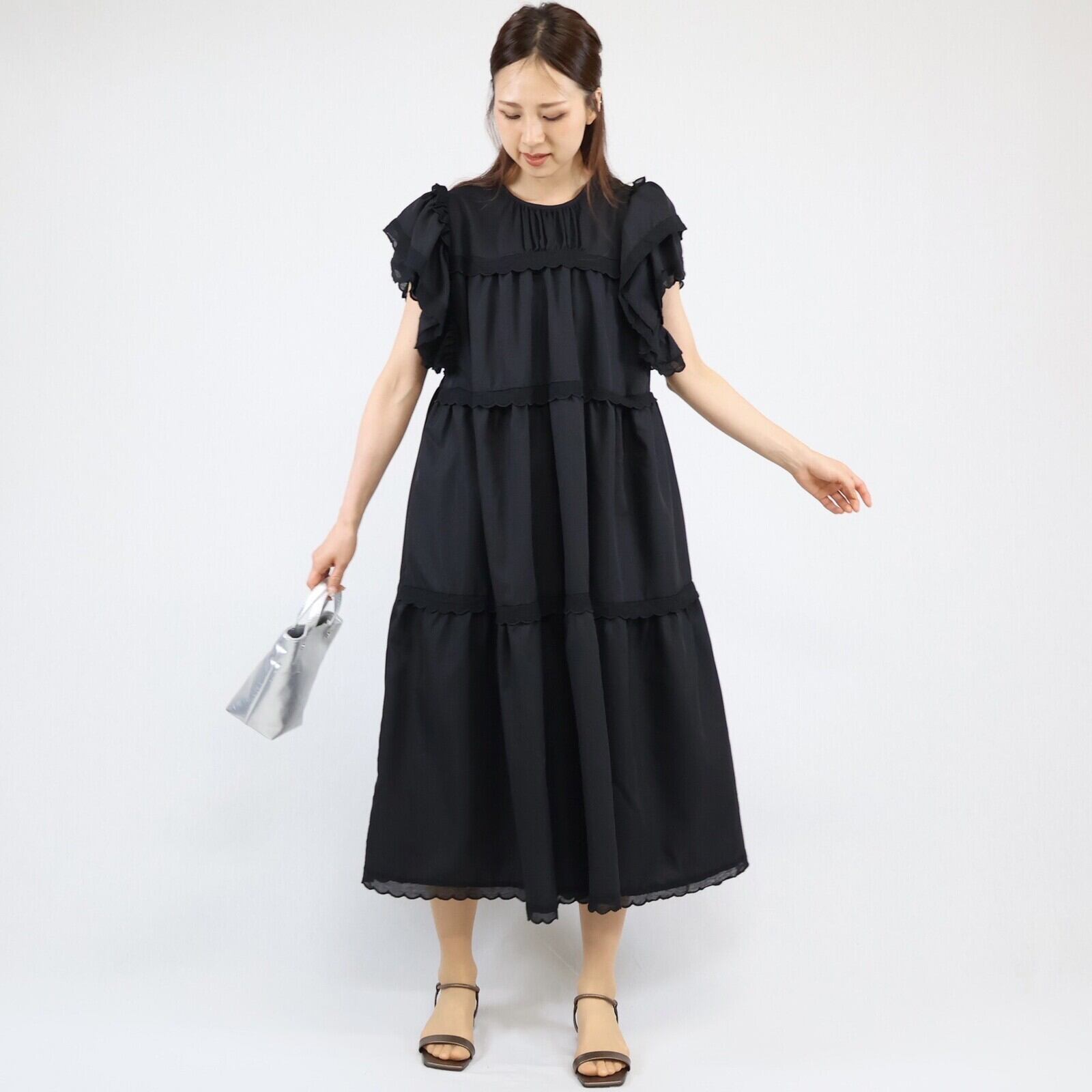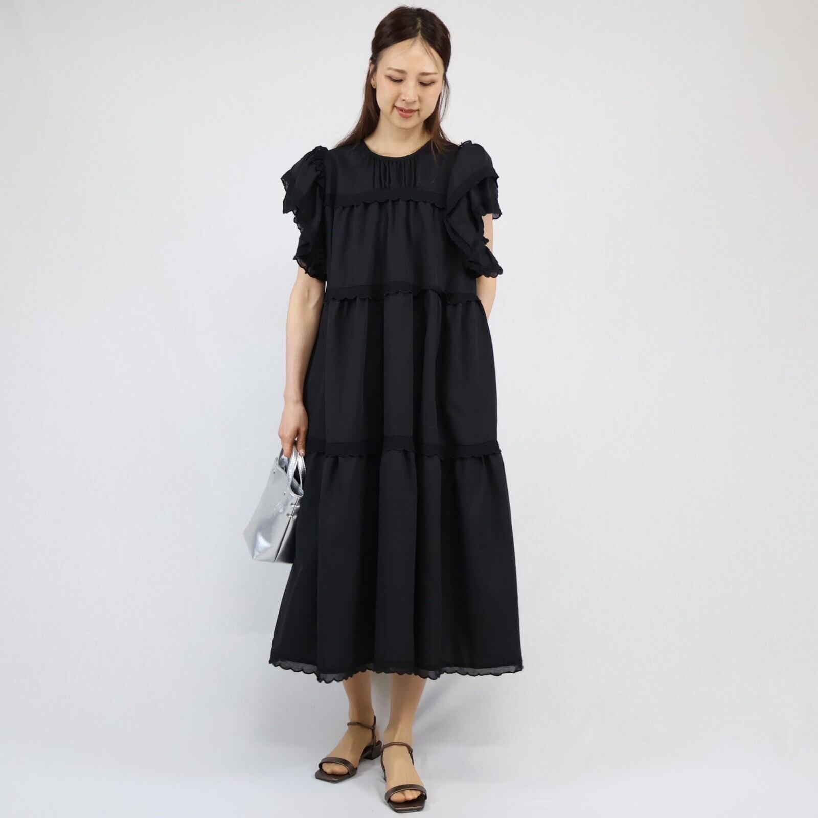 【2024年度 新作】無地 フリル レース ティアード ワンピース 即納