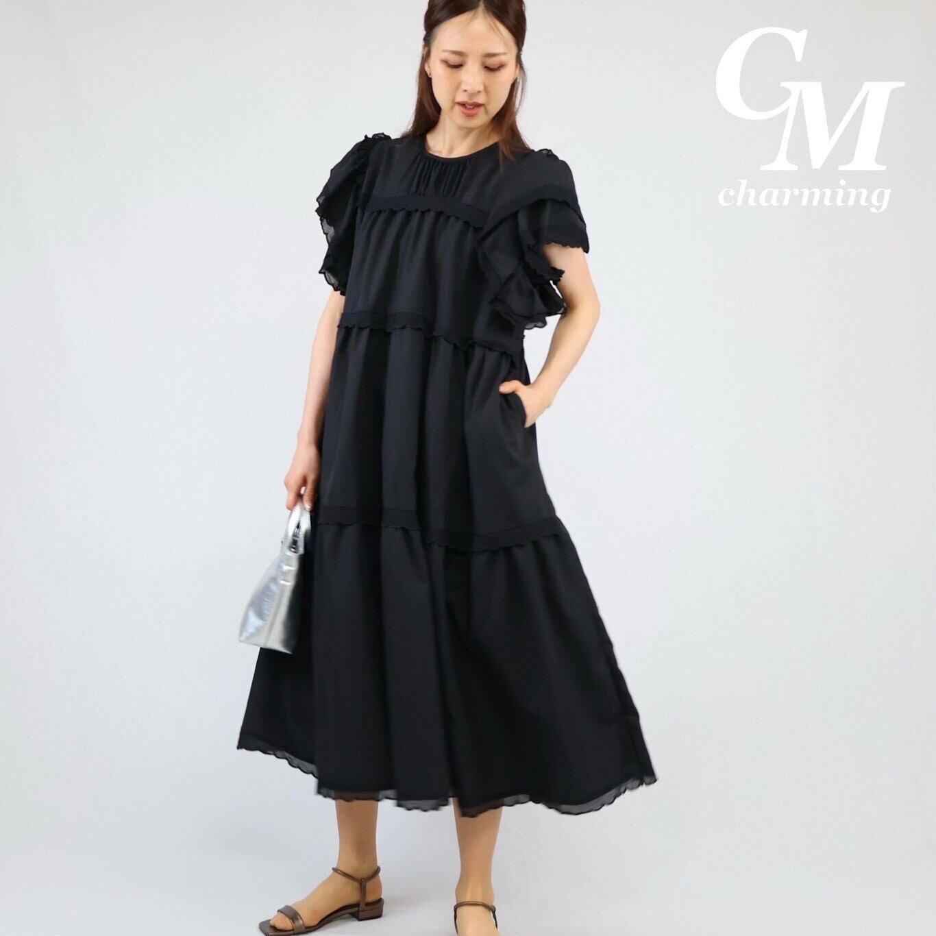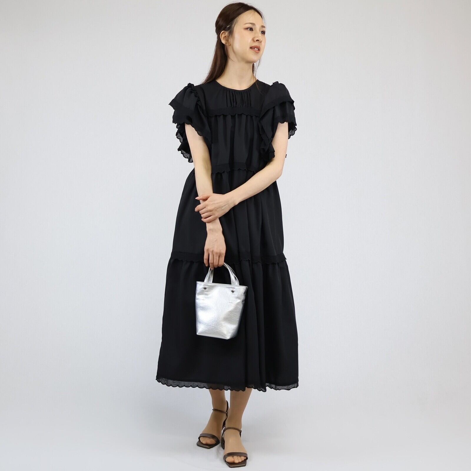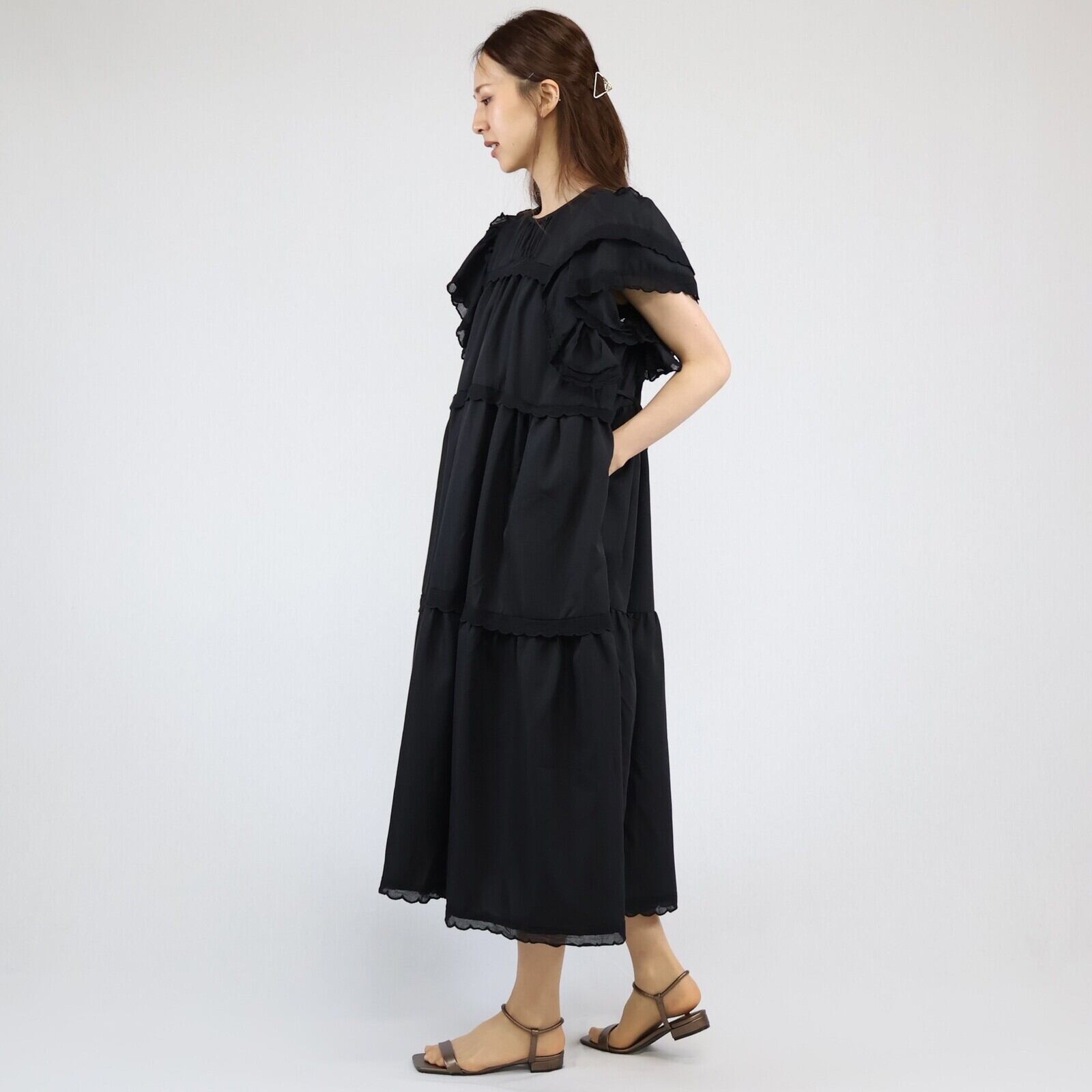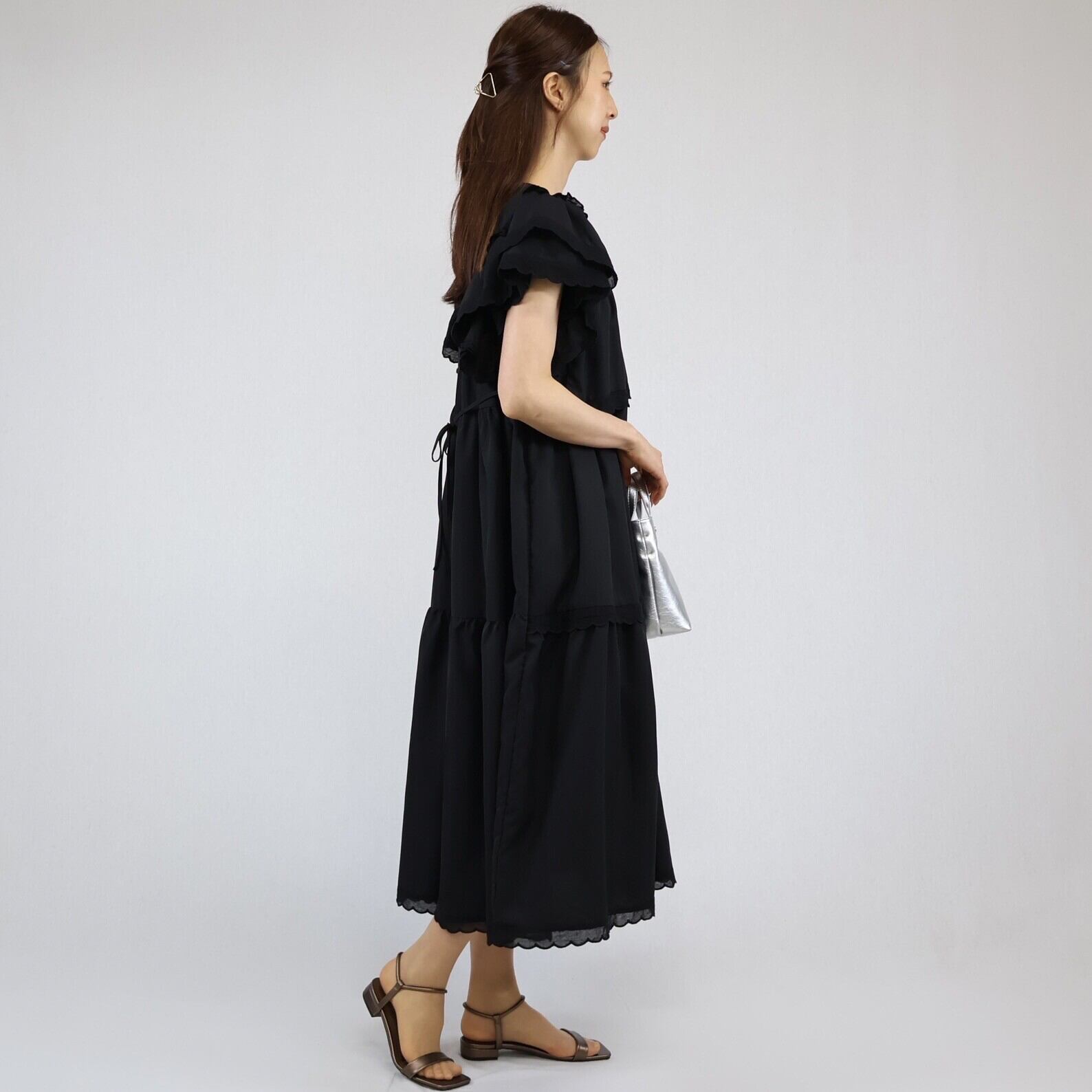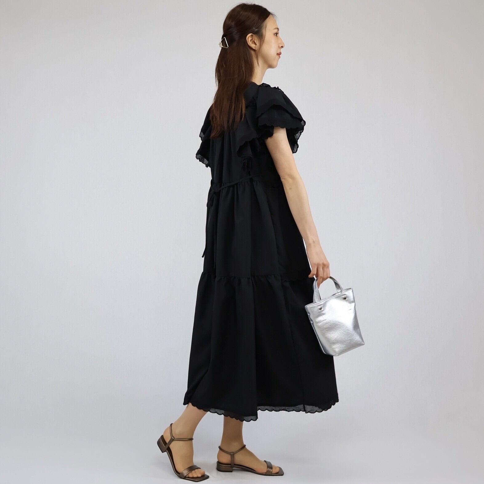 【2024年度 新作】無地 フリル レース ティアード ワンピース 即納